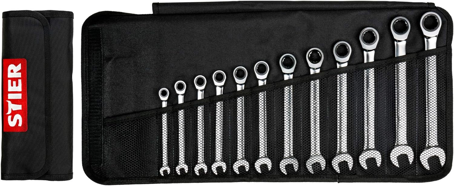 Nur einen Bruchteil des Preises von Wera-Ringratschenschlüsseln kostet das 12-teilige Werkzeugset von Stier.