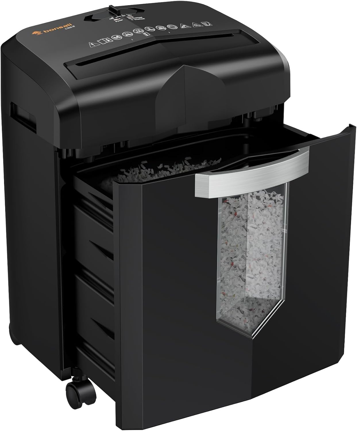 Bonsaii 12-Blatt Partikelschnitt Aktenvernichter, läuft 60 Minuten lang, Hochleistungs schredder aktenvernichter für Home Office, P4 Mikroschnitt papierschredder mit 4 Rollen & 16L Behälter(C266-B)