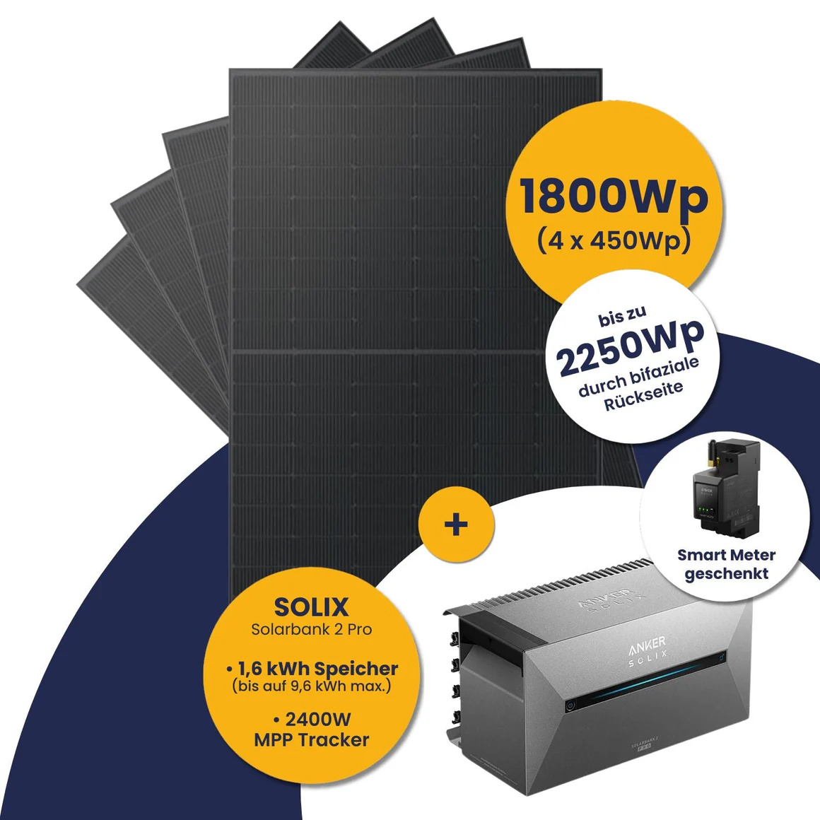 Das Quattro-Balkonkraftwerk verfügt über vier Solarmodule mit neuester TopCon-Technologie, die eine Gesamtleistung von 1.800 Wp erzeugen können. Durch die bifaziale Rückseite, die auch seitliche Sonneneinstrahlung sowie Reflektionen verwerten kann, erhöht sich die maximale Leistung bei perfekten Wetterbedingungen auf bis zu 2.250 Wp.