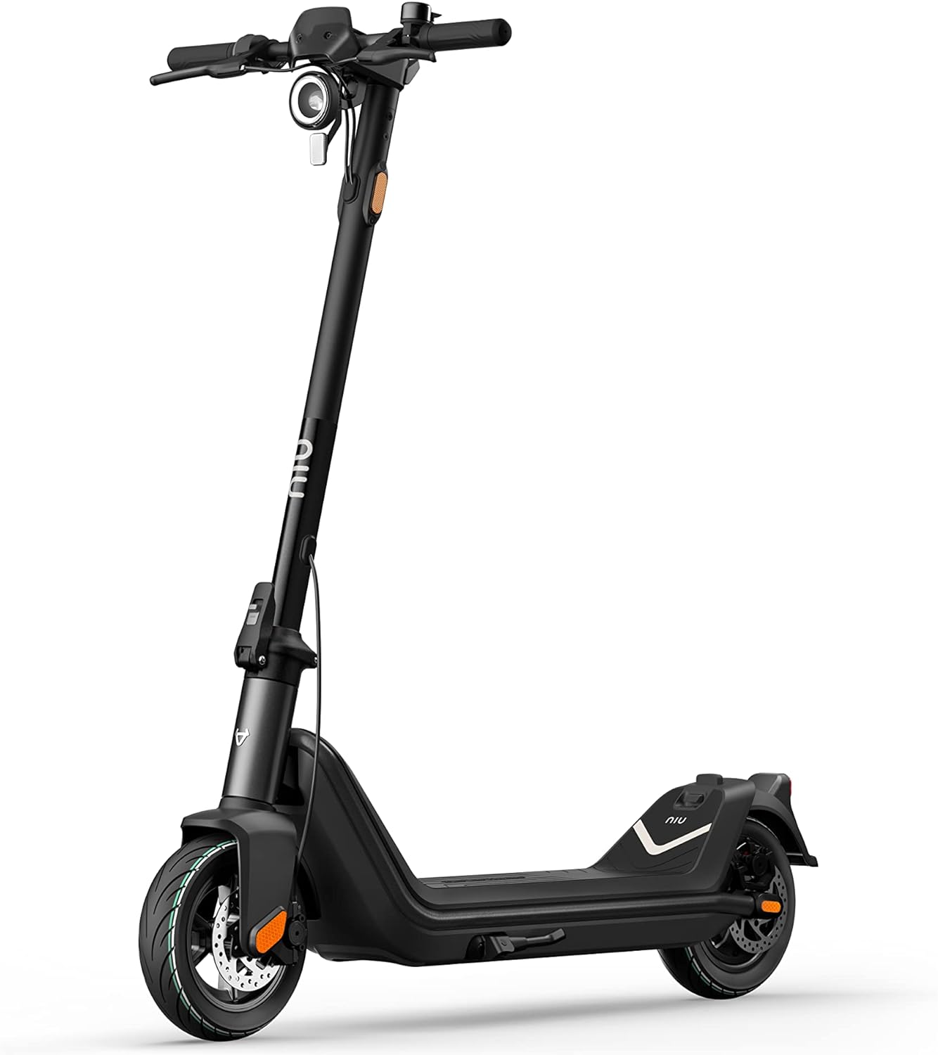 Die Beleuchtung des Rollers, bestehend aus einem hellen Halogen-Frontscheinwerfer, Seitenreflektoren und Bremslicht, trägt zur Sichtbarkeit und Sicherheit bei Nachtfahrten bei. Eine Besonderheit des NIU KQi3 Pro ist sein patentierter Klappmechanismus, der ein schnelles und einfaches Verstauen des Rollers ermöglicht, was besonders in der Stadt von Vorteil ist, da dies den Transport und die Lagerung erleichtert. Die breite Trittfläche und der hohe Lenker bieten auch auf längeren Strecken Komfort.