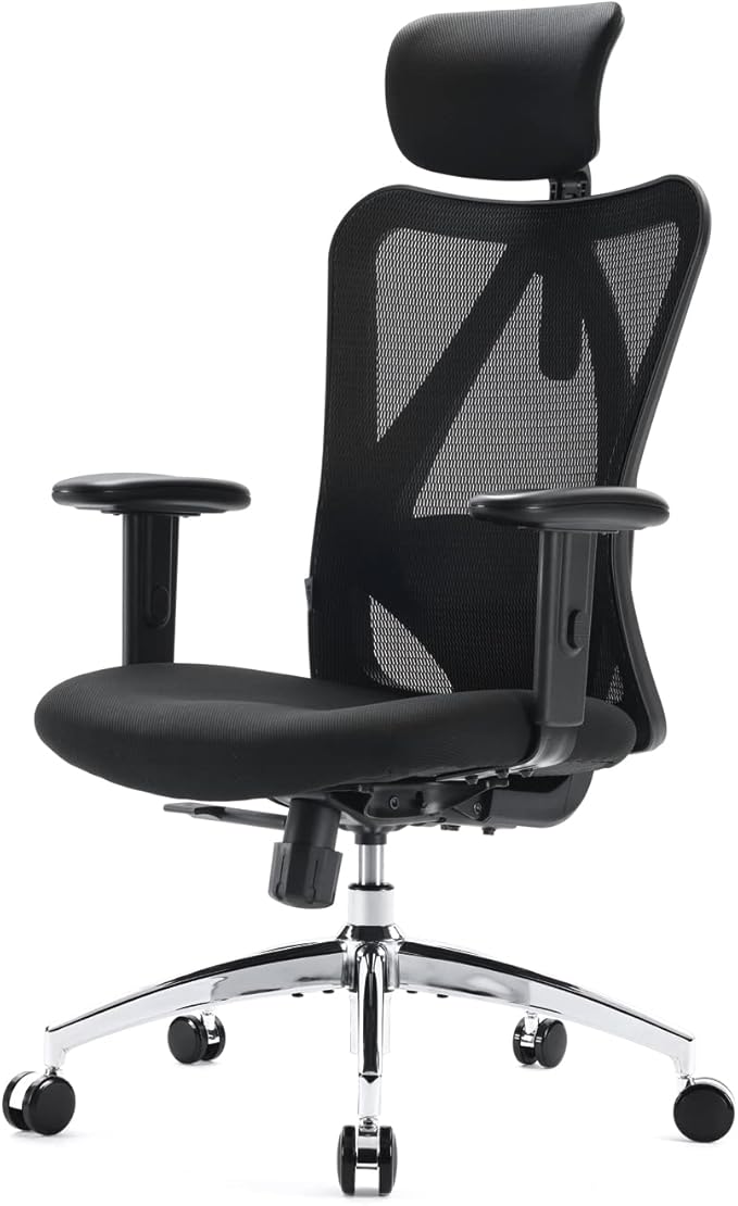 SIHOO Bürostuhl Ergonomischer Schreibtischstuhl, Drehstuhl hat Verstellbarer Lordosenstütze, Kopfstütze und Armlehne, Höhenverstellung und Wippfunktion, Rückenschonend, Bis 150kg