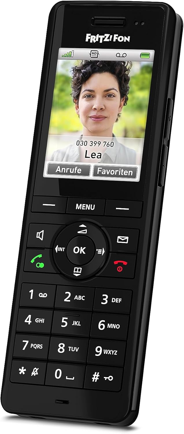Das FRITZ!Fon X6 kommt mit einem hochwertigen 2,4 Zoll großen Farbdisplay. Sein großer Akku erlaubt bis zu 16 Stunden Gesprächsdauer und bis zu zehn Tage im Stand-by-Modus. Dank Bewegungssensor wird es bei Benutzung automatisch aus dem Stand-by aufgeweckt. Es unterstützt HD-Telefonie und Full-Duplex-Freisprechen, bietet Telefonbücher mit bis zu 300 Einträgen und fünf Anrufbeantworter mit Fernabfrage. Alle Anrufe werden über DECT-Funk verschlüsselt und sicher übertragen.