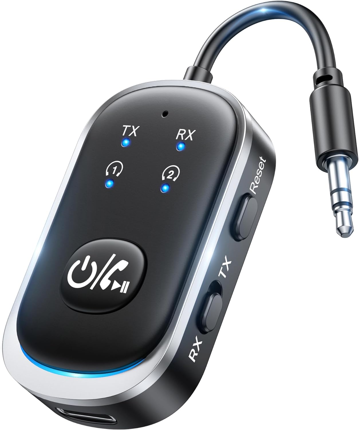 Im RX-Modus kann der Adapter beispielsweise an eine Soundanlage oder an das Autoradio angeschlossen werden, um Musik vom Smartphone oder Tablet zu streamen. Andersherum kann im TX-Modus der Ton von Fernsehern und Stereoanlagen auf Bluetooth-Kopfhörer und -Lautsprecher übertragen werden, um zu Hause ungestört Filme und Musik zu genießen oder das Unterhaltungsprogramm im Flugzeug mit Airpods zu verfolgen. Auch die Verbindung mit zwei Kopfhörern gleichzeitig ist möglich, damit Freunde oder Familienmitglieder an dem Erlebnis teilhaben können. Die Umschaltung zwischen RX- und TX-Modus erfolgt über eine Taste am Adapter. Eine LED zeigt an, welcher Modus gerade aktiv ist.