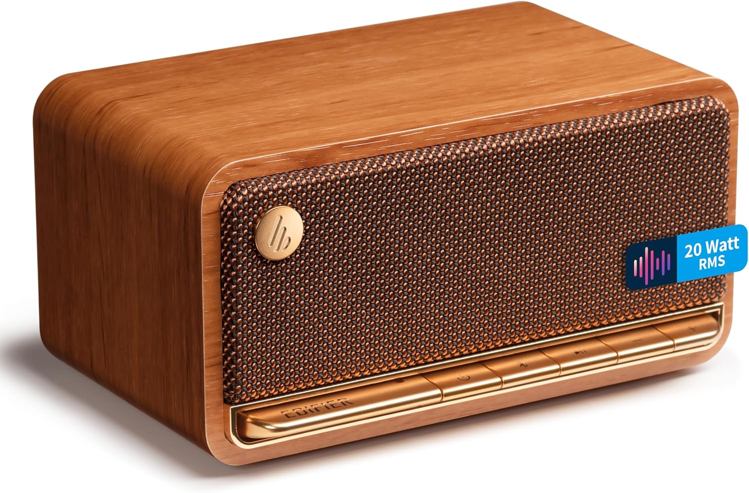 Mit zwei 48 Millimeter großen Vollfrequenz-Treibereinheiten und digitaler Klangregelung (DSP) erzeugt der Bluetooth-Lautsprecher von Edifier einen satten Stereosound, der sich durch klare Höhen, kraftvolle Mitten und spürbare Bässe auszeichnet. Dabei erreicht er eine Leistung von 20 W und kommt auch in größeren Räumen gut zur Geltung. Das hölzerne Gehäuse verpasst dem Sound zusätzlich eine warme Note.