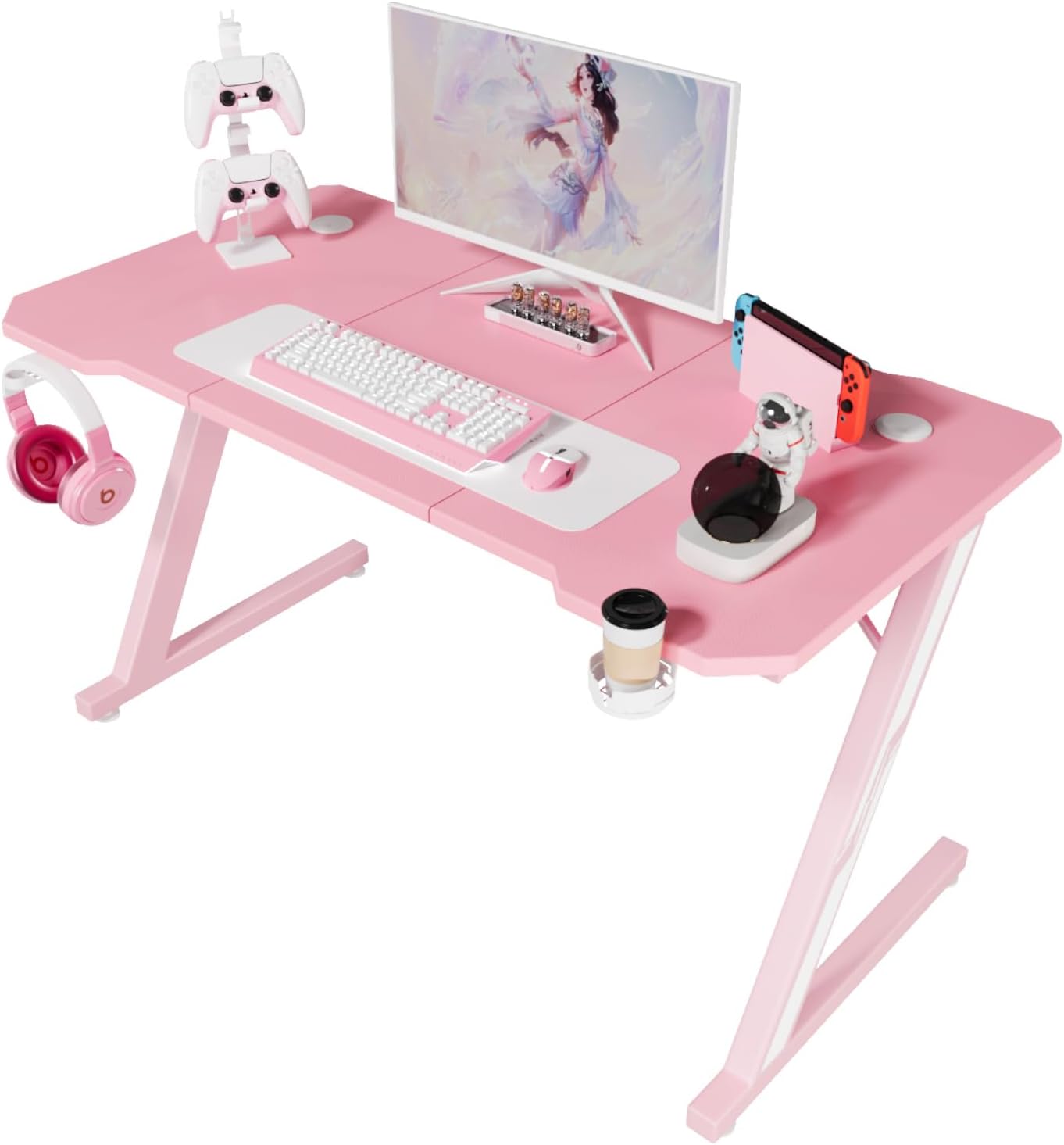 Bei Amazon gibt's Gaming-Tische in 120 x 60 und 80 x 52 cm im Angebot. Sie kommen mit Kopfhörerhaken und – wahlweise – Tischplatte in Rosa.