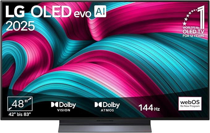 Der OLED48C5ELB(öffnet im neuen Fenster) bleibt ebenfalls bei 48 Zoll, setzt aber auf den α9-Gen8-Prozessor und richtet sich stärker am Gaming-Alltag aus. Bis zu 144 Hz, G-Sync und FreeSync sorgen für flüssige Darstellung, wenn der TV auch als großer Monitor genutzt wird. Das OLED-evo-Panel soll laut Hersteller hell bleiben, ohne perfekte Abdunklung zu benötigen. WebOS 25 und die Magic Remote erleichtern den täglichen Wechsel zwischen Apps und anderen Quellen. Für 779 Euro bekommt man den OLED-TV von LG mit Dolby Atmos und Dolby Vision.