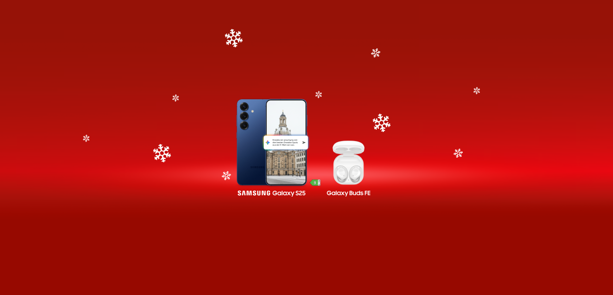Aktuell bietet Vodafone das Samsung Galaxy S25 im Bundle mit dem Vodafone-Tarif GigaMobil M(öffnet im neuen Fenster) an. Wer sein Smartphone nach Erhalt bis zum 28. Januar hier registriert(öffnet im neuen Fenster) , bekommt im Anschluss die In-Ear-Kopfhörer Galaxy Buds FE im Wert von 109 Euro kostenlos obendrauf. Der Tarif ist derzeit mit doppeltem Datenvolumen ausgestattet, wodurch monatlich 100 GByte zur Verfügung stehen, um damit das superschnelle 5G-Netz zu nutzen. Für SMS und Telefonie ins deutsche Mobil- und Festnetz steht eine Allnet-Flat bereit. Bei 36 Monaten Laufzeit zahlen Nutzer 14 Euro weniger als den ursprünglichen Preis und bekommen das Bundle für 60,99 Euro monatlich. Hinzu kommt eine Anzahlung von 1 Euro sowie 9,98 Euro Versandkosten. Der Anschlusspreis entfällt.