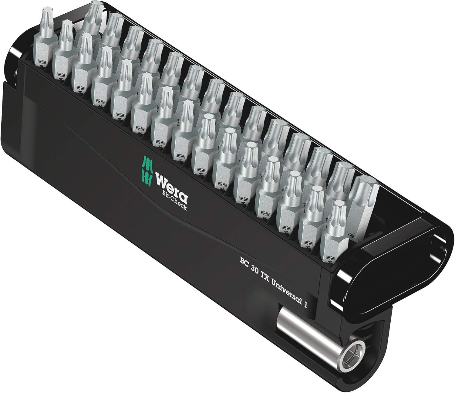 Das Torx-Profil ist das Ass im Ärmel eines Handwerkers, das einen festen Griff verspricht. Im Gegensatz zum klassischen Kreuzschlitz reduziert es den Verschleiß an Bits und Schrauben drastisch. Kein Wunder, dass Torx bei Heimwerkern und Profis gleichermaßen hoch im Kurs steht. Auch der Wera Bit-Check 30 ist mit einer Vielzahl von Torx-Größen ausgestattet, der für jede Herausforderung gewappnet ist.