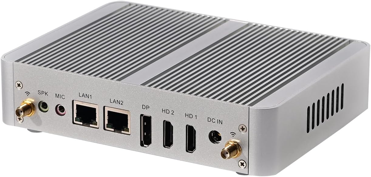 HUNSN Fanless Mini PC, Desktop Computer, HTPC, Kodi Box, Intel N100, Windows 11 Pro or Linux Ubuntu, BM34, AC WiFi, BT, 8 x USB, 2 x LAN, DP, 2 x HDMI, 8G RAM 128G SSD